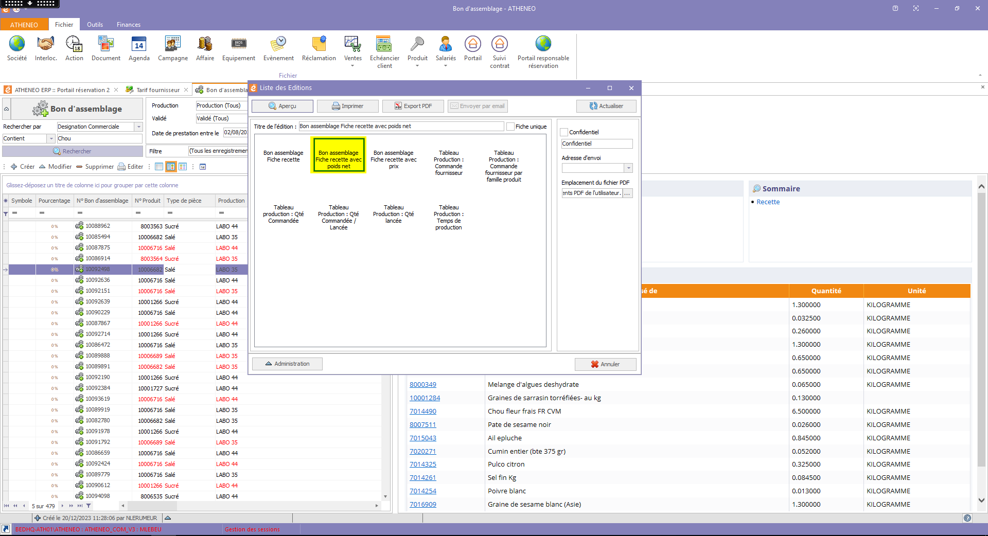 Pour éditer des bons d'assemblage / fiches recettes avec le poids netAtheneo commencez par vous connecter sur Atheneo :