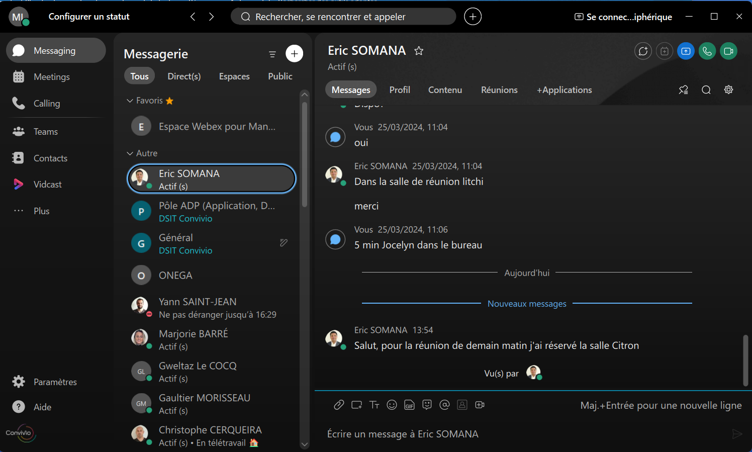 Pour utiliser la messagerie instantanée WEBEX il est nécessaire que celle-ci soit installée sur votre poste.