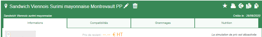Les onglets de compatibilités, grammages et nutrition :