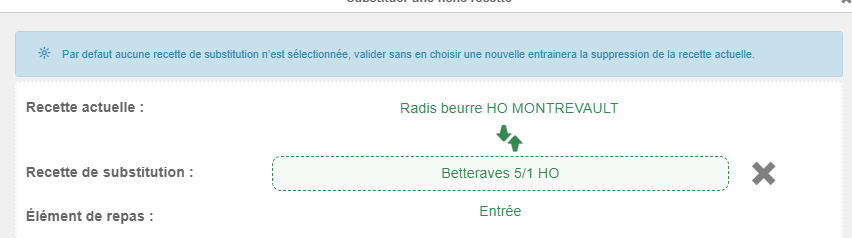La recette de substitution n'apparaissaient pas :