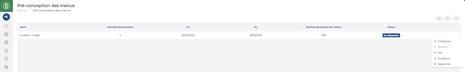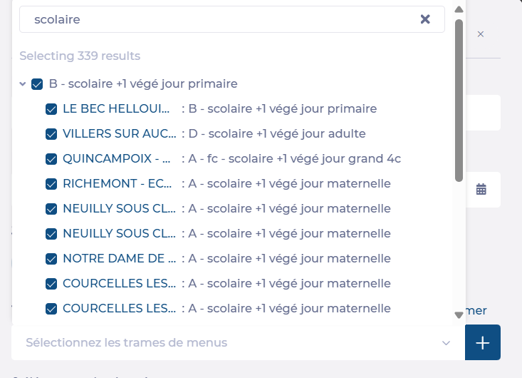 - Donner un nom à ce plan de menu en fonction des trames que l'on souhaite impacter. Ici Scolaire + 1 végé.