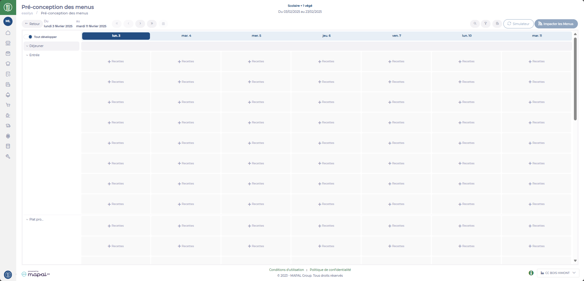 Une fois tous les éléments de repas remplis pour tous les jours de la semaine de la période il est possible de lancer la simulation.