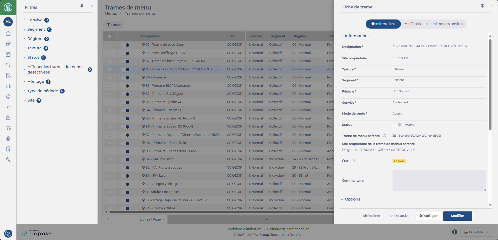 MAPAL a mis à disposition une nouvelle façon de concevoir et gérer les menus.