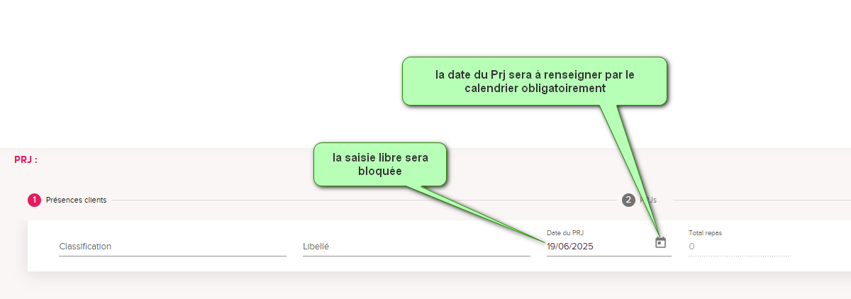 2 - Dans l'onglet PRJ modification concernant la saisie de la date