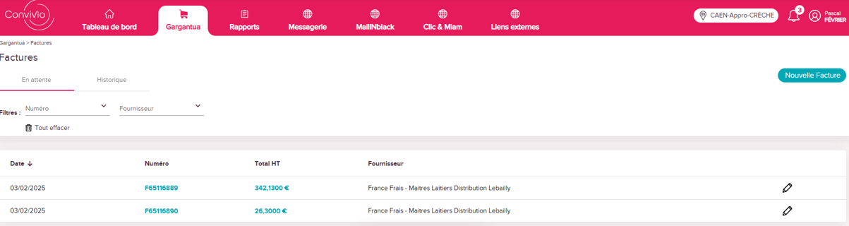 Les factures arriverons dans la partie "En attente", les opérateurs validerons ces factures pour déclencher le paiement.