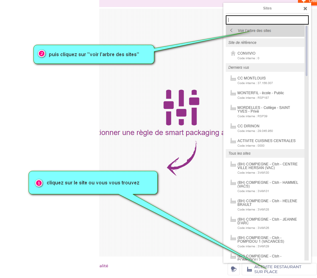 - Sur les "restaurants sur place", les menus du site de production et les menus des sites livrés.