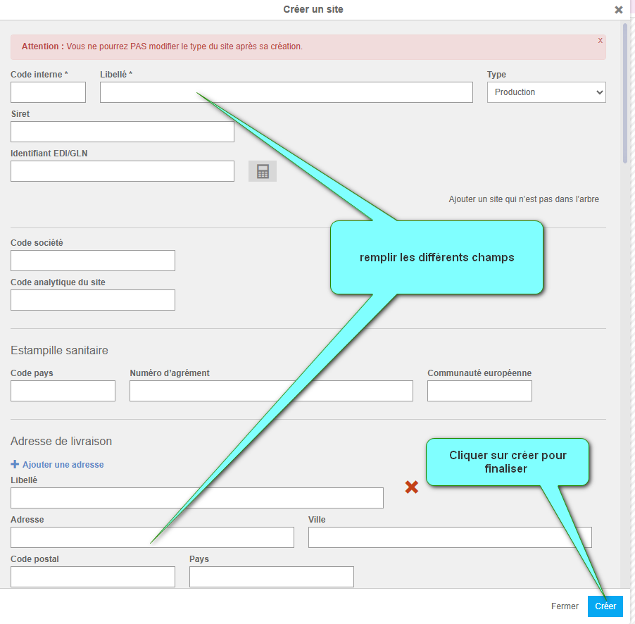 De la même manière, remplir la fiche client puis cliquer sur "Créer" pour enregistrer ce nouveau site.