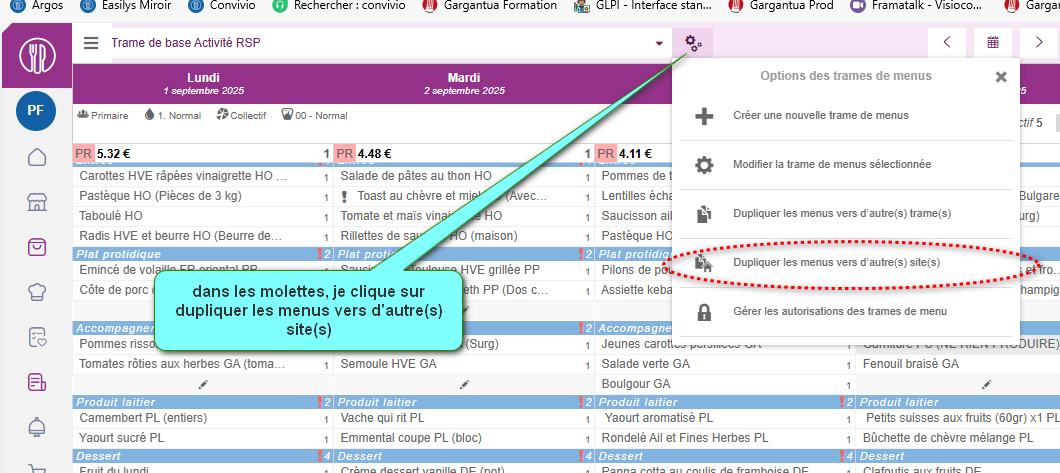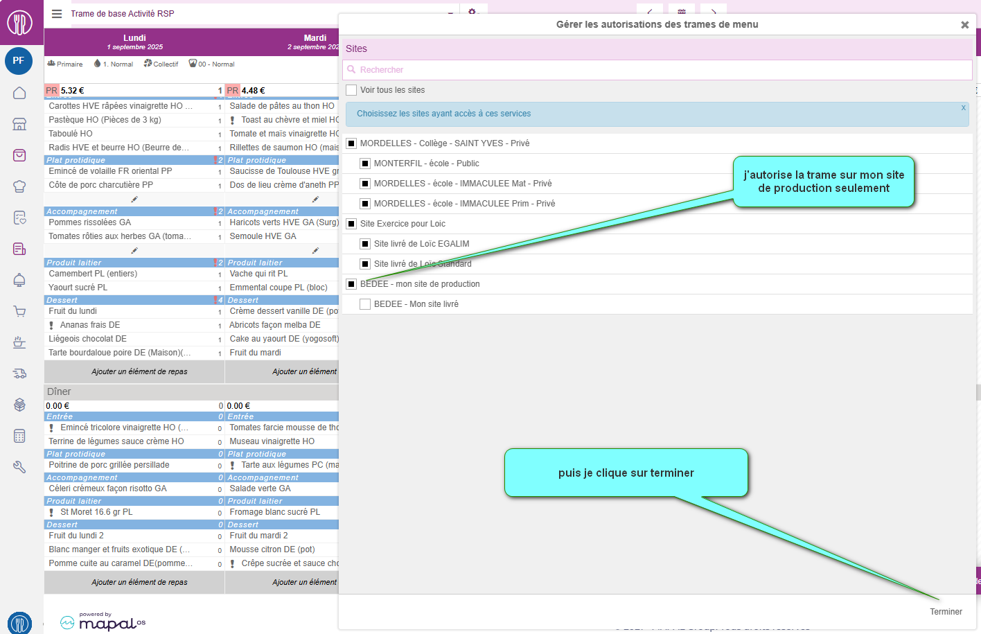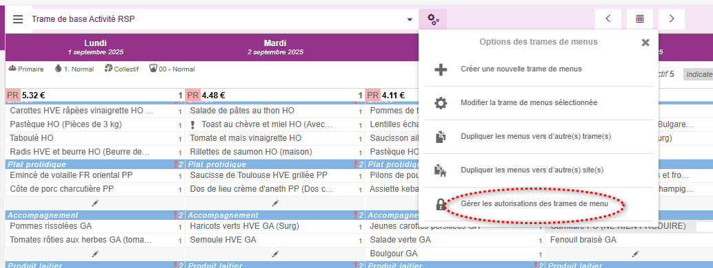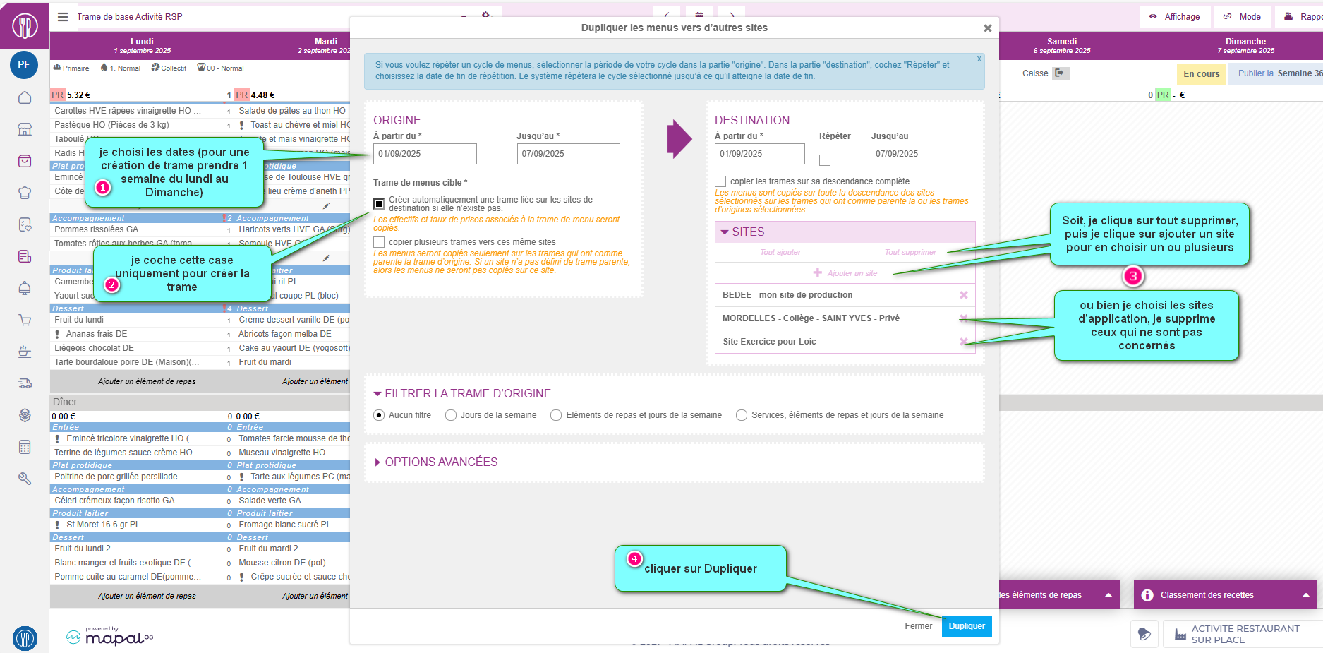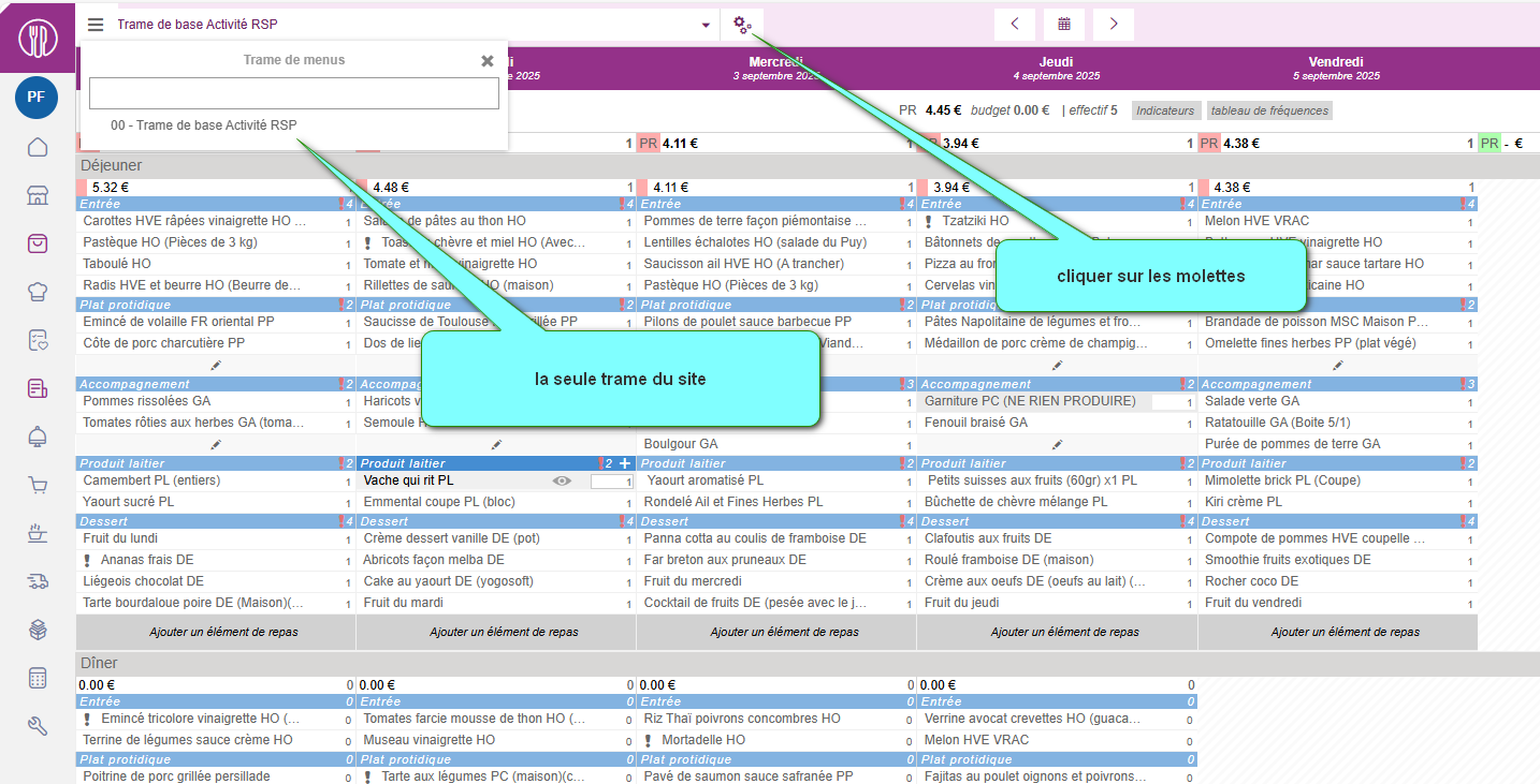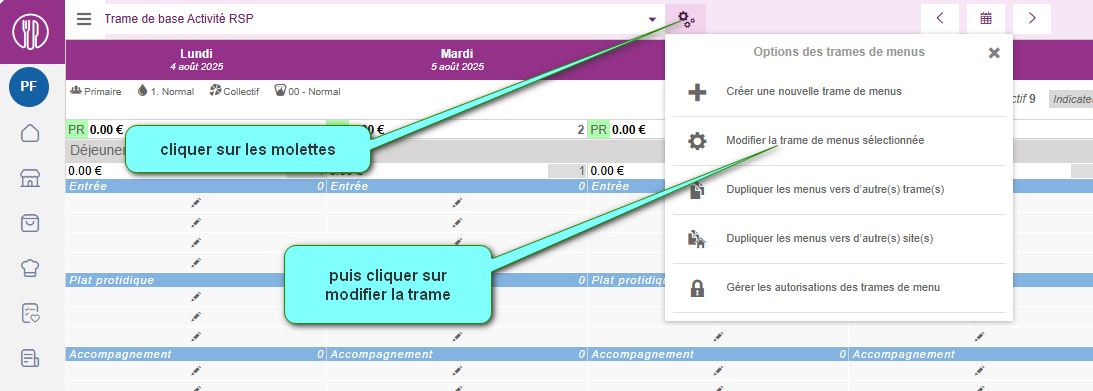 1 - Création d'une trame de menu sur un Restaurant Sur Place