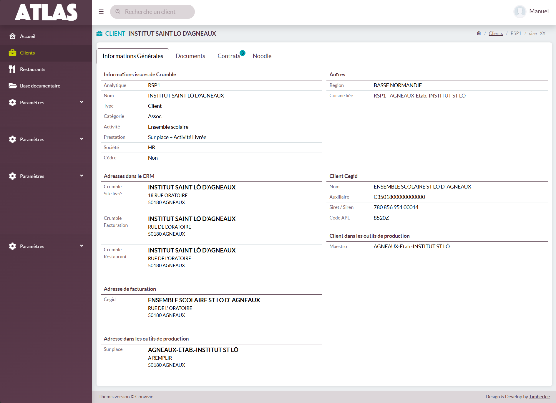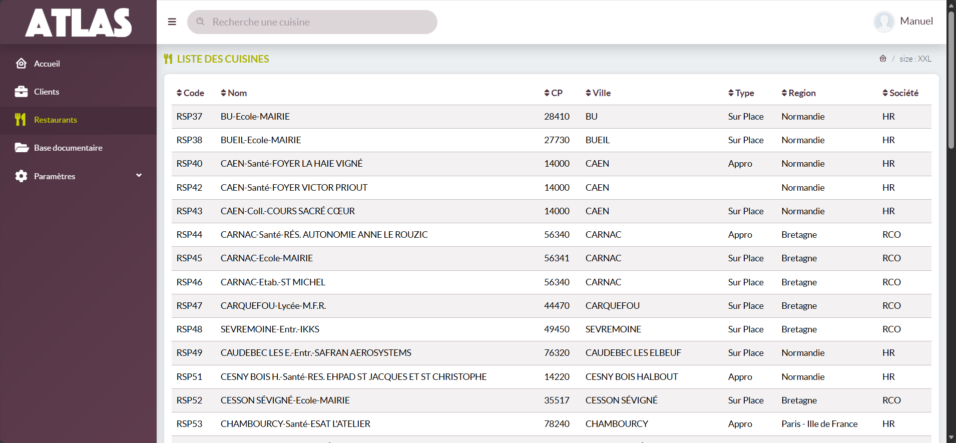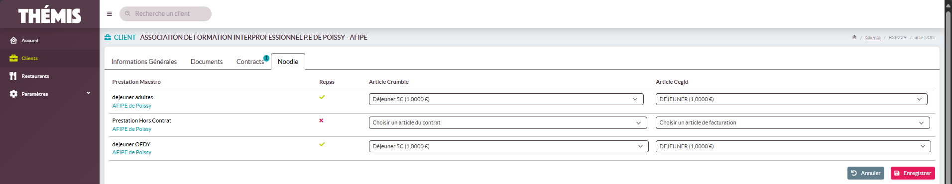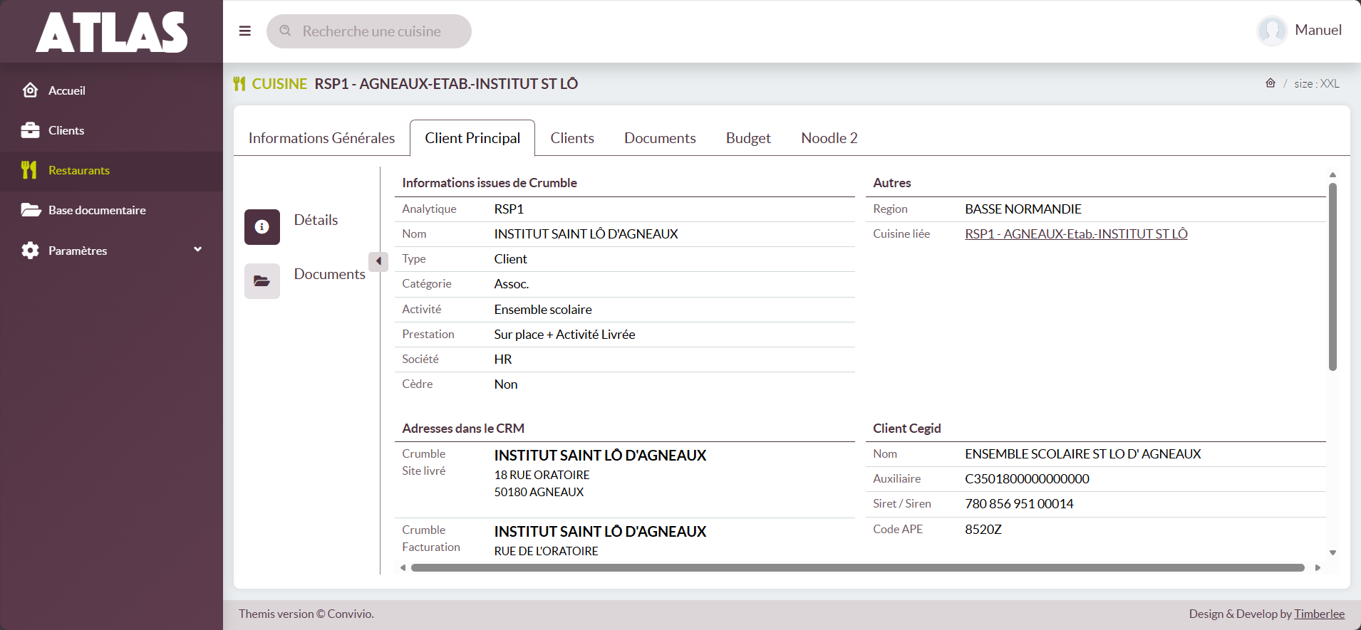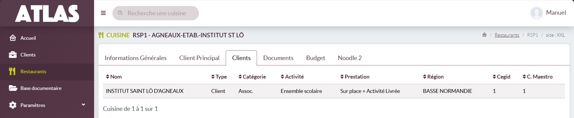 - Société : la société juridique à laquelle est rattaché le restaurant.