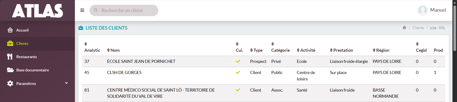 S'affichent alors un client par ligne avec les informations de :