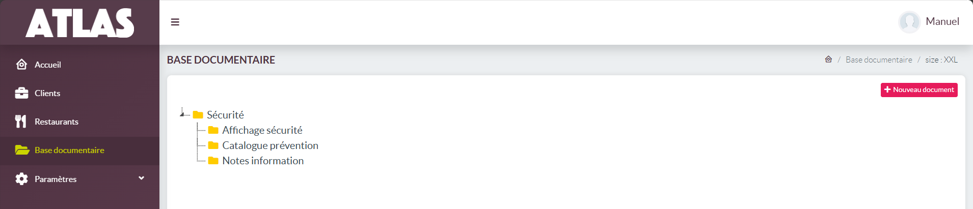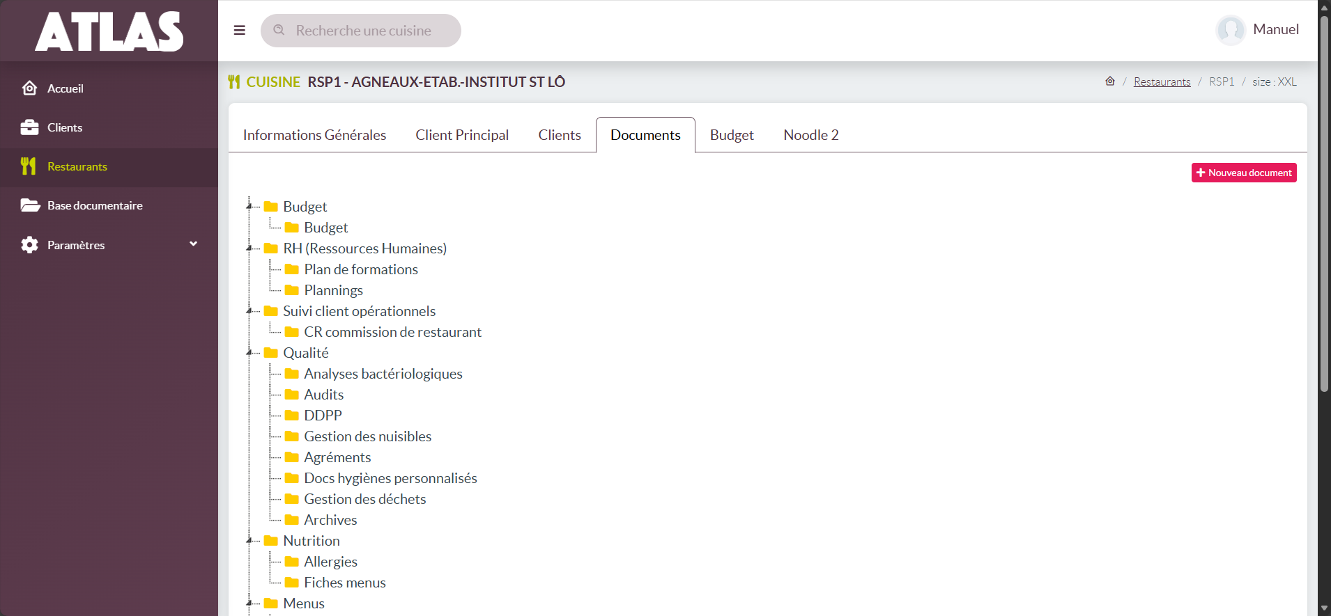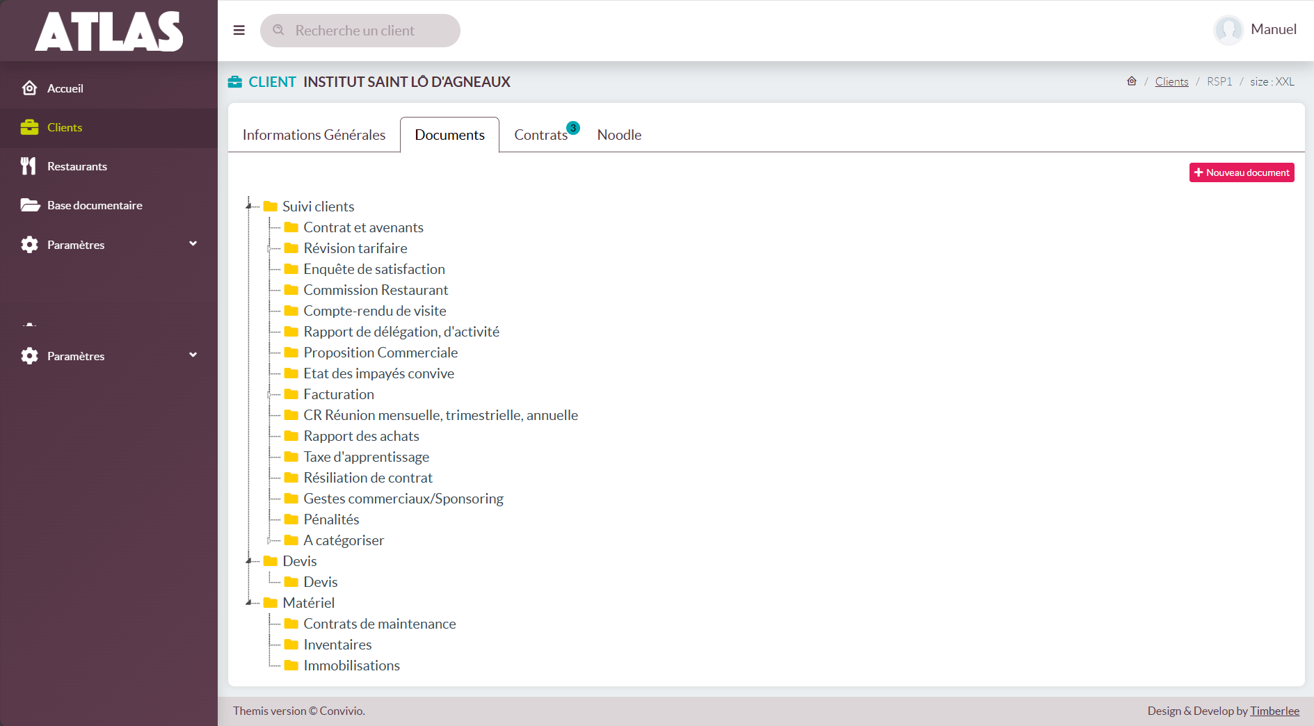 - Base documentaire : cet onglet a pour objectif de gérer l'arborescence documentaire globale CONVIVIO (donc non spécifique de vos restaurants clients).