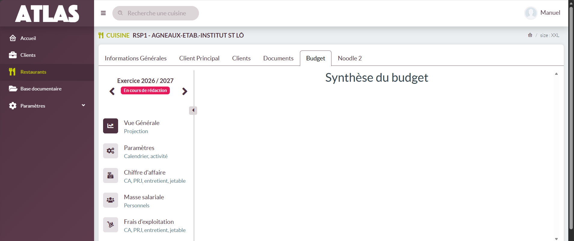 Sur cet onglet vous pouvez retrouvez les informations relatives au budget du restaurant : pas mis en production aujourd'hui.