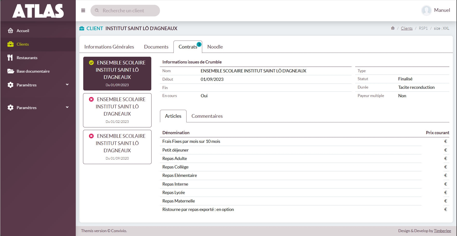 Vous pouvez retrouver les informations relatives au contrat CRUMBLE du client :