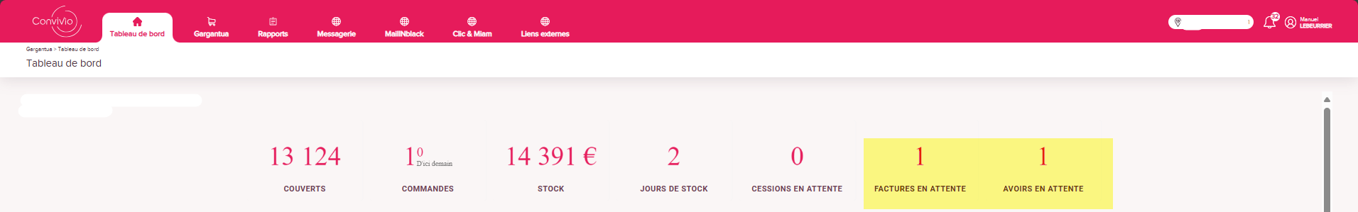 Il se peut que vous ayez des factures assez anciennes qui restent en attente sur votre site. Attention à ne pas trop repousser la gestion de celles-ci sinon les fournisseurs se gardent le droit de suspendre les livraisons. Je suis bien conscient que certaines factures ont été gérées par d'autres chefs (parfois plus présents dans l'entreprise) et que c'est parfois compliqué de s'y retrouver mais la bonne pratique veut que vous vous rapprochiez du support informatique pour valider ce qui doit l'être. Pour rappel le tableau de bord de votre site est mis à jour tous les matins avec les nombres d'avoirs et de factures en attente :